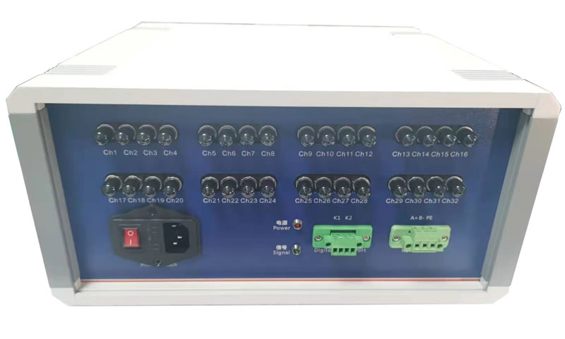 熒光式光纖測溫儀為壁掛式安裝。該產品在高電壓、強電磁干擾等特殊環境下測溫有著獨特的技術優勢。其中測溫儀使用的熒光式光纖溫度傳感器的溫度熱點與測量信號接收部分沒有使用電氣連接,能長期高精度和高穩定度工作,這大大提高了其應用范圍。與此同時,光纖測溫儀有效地解除高壓斷路器或電纜頭處于過高溫環境下使用而縮短壽命,甚至燒毀斷路器或電纜,不利于開關柜的安全運行等隱患。變送器的精度及靈敏度高且耐高壓防腐蝕、可遠程監測、壽命長,體積小、使得儀表維護簡易方便,運輸安全。其內部模塊化集成設計,美觀合理。